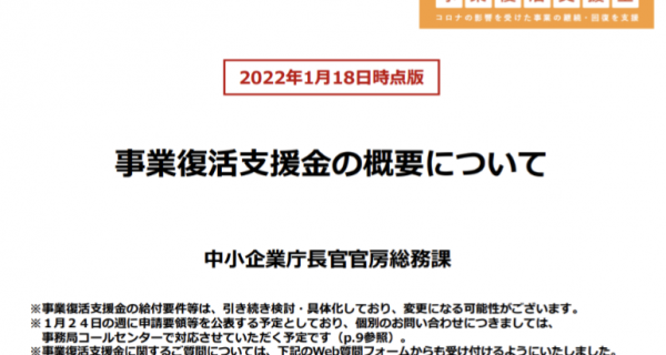 【国】事業復活支援金 2022年1月31日申請受付開始